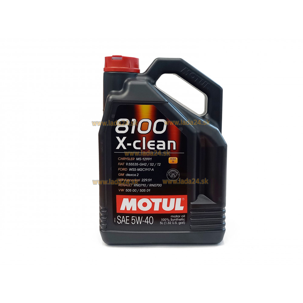 MOTUL 8100 X-CLEAN 5W-40 je syntetický olej (Mid-SAPS), určený špeciálne pre dieselové filtre pevných častíc (DPF) a trojcestné katalyzátory. Pre každé vozidlo poháňané naftou s priamym vstrekovaním, spĺňajúce požiadavky EURO V a EURO VI, vyžadujúce ACEA C3 motorový olej. Olej špeciálne vyvinutý pre výkonné benzínové aj naftové motory súčasných moderných automobilov, opatrené priamym i nepriamym vstrekom, preplňované (TURBO) aj atmosférické.